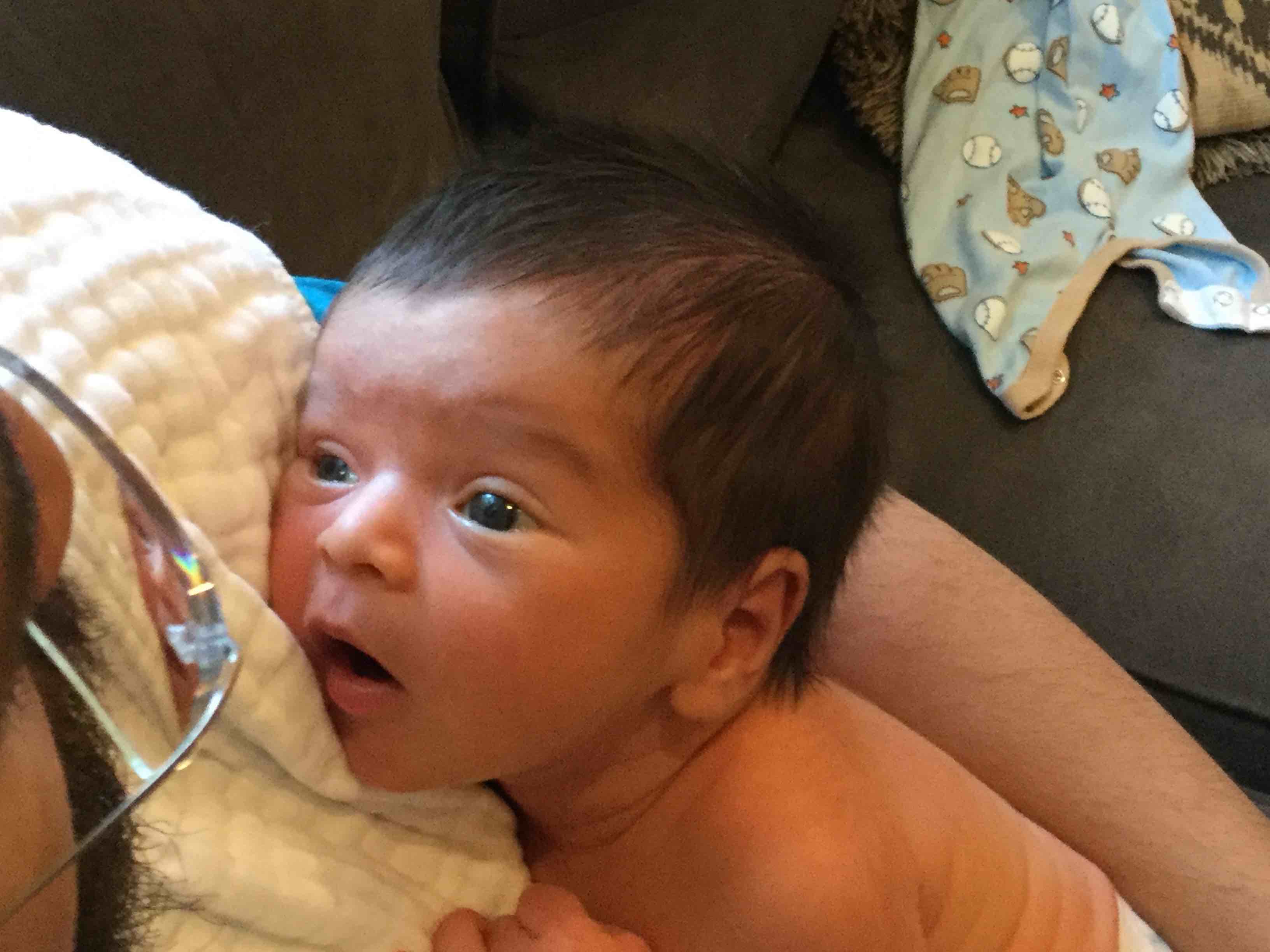 Daniel “Aury” Nunez is home. He was born on Tuesday, October 6th, 2020. He weighed 8 lb., and measured 21 inches. Since he was born at 11:33 pm., and because the tests he needed to be discharged had to be run at the 24-hour mark, we made it home until Thursday.