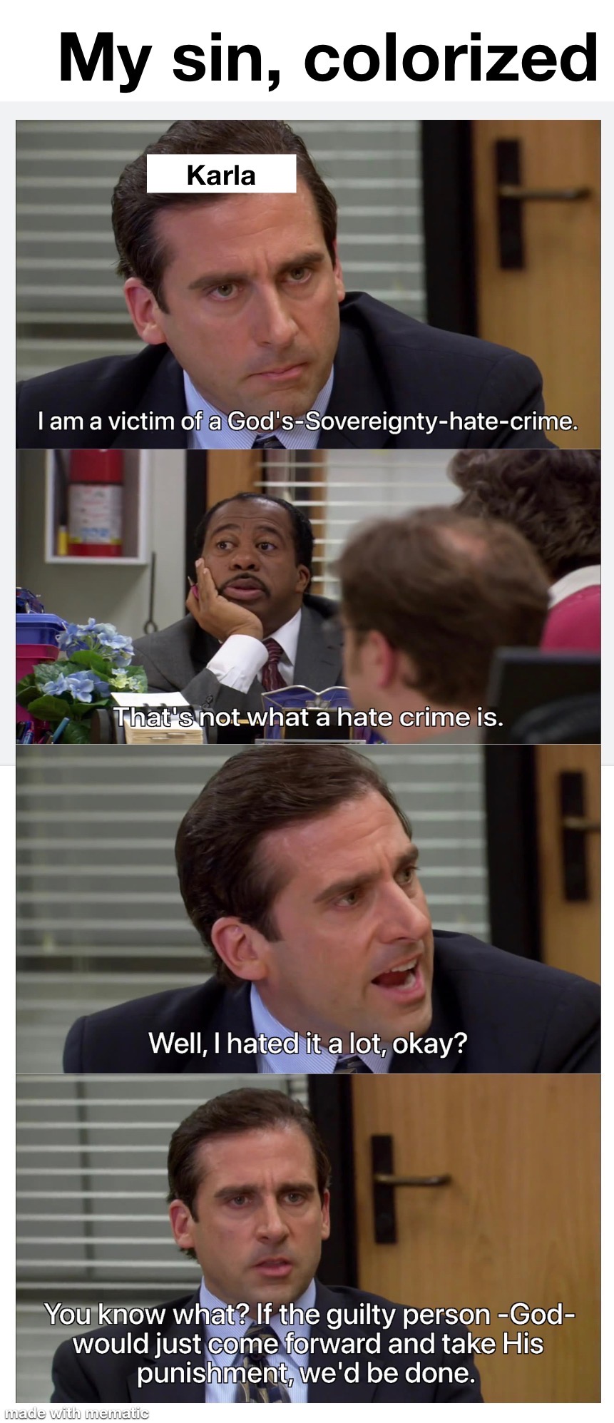 I would hope you would give me a chance to explain what I mean, but it doesn’t take five minutes, you know. I’m going to link some wonderful resources that talk about God’s Sovereignty and God’s Providence, the misunderstandings of it, and how to deal with biblical texts. God is indeed sovereign and omnipotent while at the same time, unchanging and unchangeable, just and loving, merciful and holy.