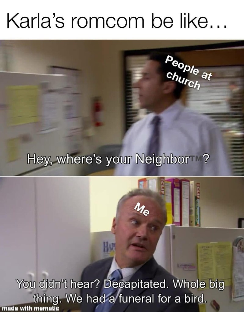 Long story short, my neighbor apologized to me a couple times within the last two weeks. It was the same text, he just sent it twice after I ignored it. We did not end up in good terms seven months ago. I was rude, he was rude. I was probably more rude. Anyway, he said he had reconciled with God, but not with me, and that I was the child of God who reached out to him in his solitude, and that he never honored me for the many blessings I had brought into his life, and the lives of his children. When I read all of that, I was like, “BARF!”