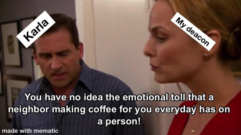 I could not introduce this man to my family unless I knew he was a Christian. When I say my family, I mean my pastor and my congregation. My neighbor knew from the very beginning that this was my position. Unless he could articulate the gospel, and explain to me how he came to faith in Christ, and was willing to sit with me and study the 1689 LBCF, nothing was going to move forward. I forgot a key element in this story: He was Lutheran, from the ELCA. Women pastors and such… and if you know anything about me (either because you have read my blog or because you personally know me) you should be ROFL. This is the man I was willing to marry LOL!